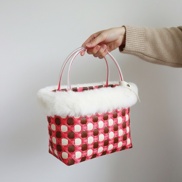 ※取り外し可能なファー付き商品 レッドxブラウンのバレンタインカラー。 遠くからもドット柄の様にも見えて でも甘くなりすぎない配色です。 マチがしっかりあるので収納力も抜群。 軽くて丈夫だから、遠出のお出かけにもぴったりです。 【素材】ポリプロピレン/合金/PVC 【サイズ (約) 】底幅20cm・高さ15cm・マチ11cm (Sワイド) ●オプション ・簡単取外しができるファー ・長さ調整が可能のチェーン https://kielily.base.shop/items/134464933 ※ご購入前に以下ご確認ください。 https://kielily.base.shop/about かごバッグ カゴバッグ プラカゴ 水濡れ 洗える 軽量 軽い お呼ばれ フォーマル パーティ プレゼント ギフト 浴衣 着物 母の日 バレンタイン レッド ブラウン