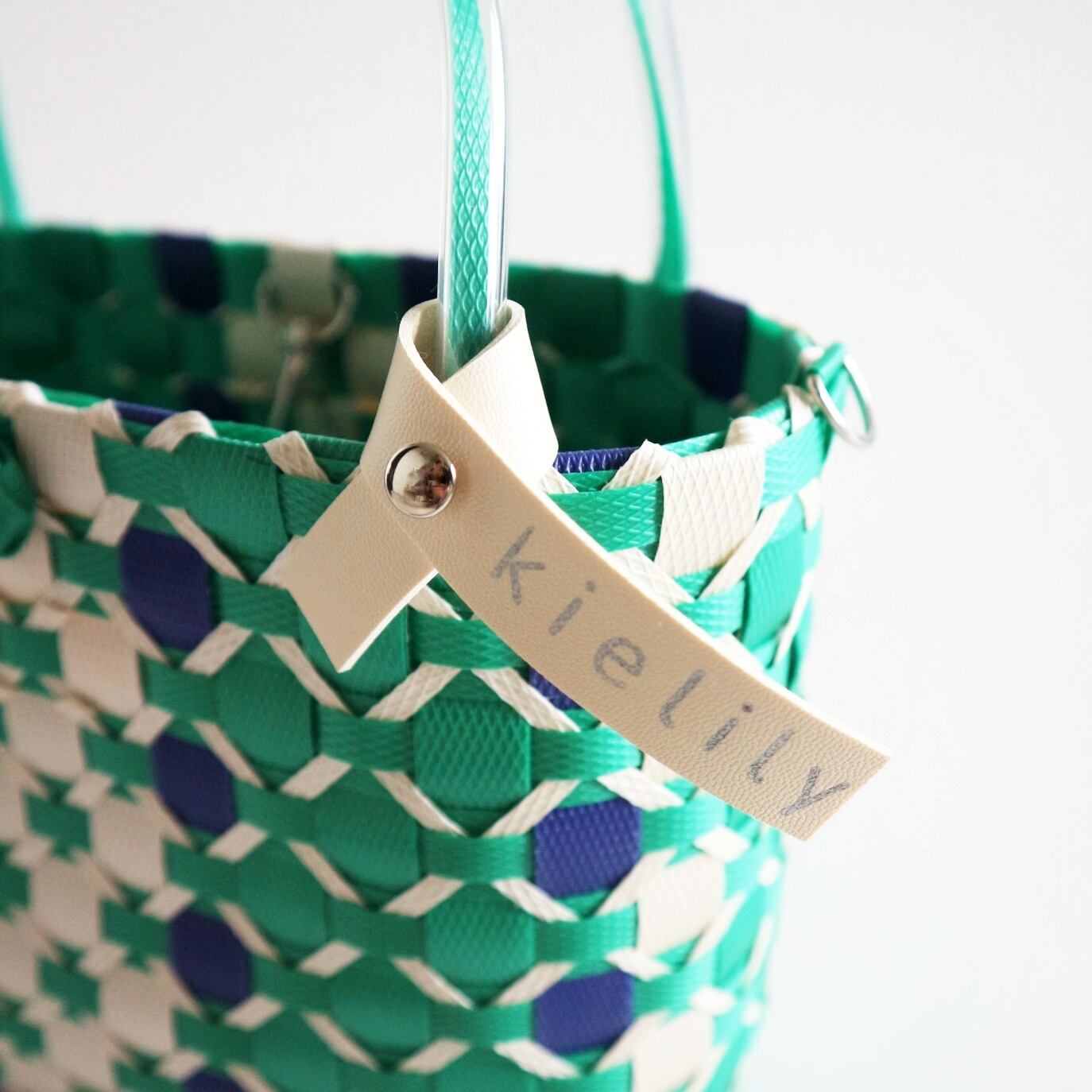 グリーン ネイビー プラカゴバッグ おでかけSサイズ