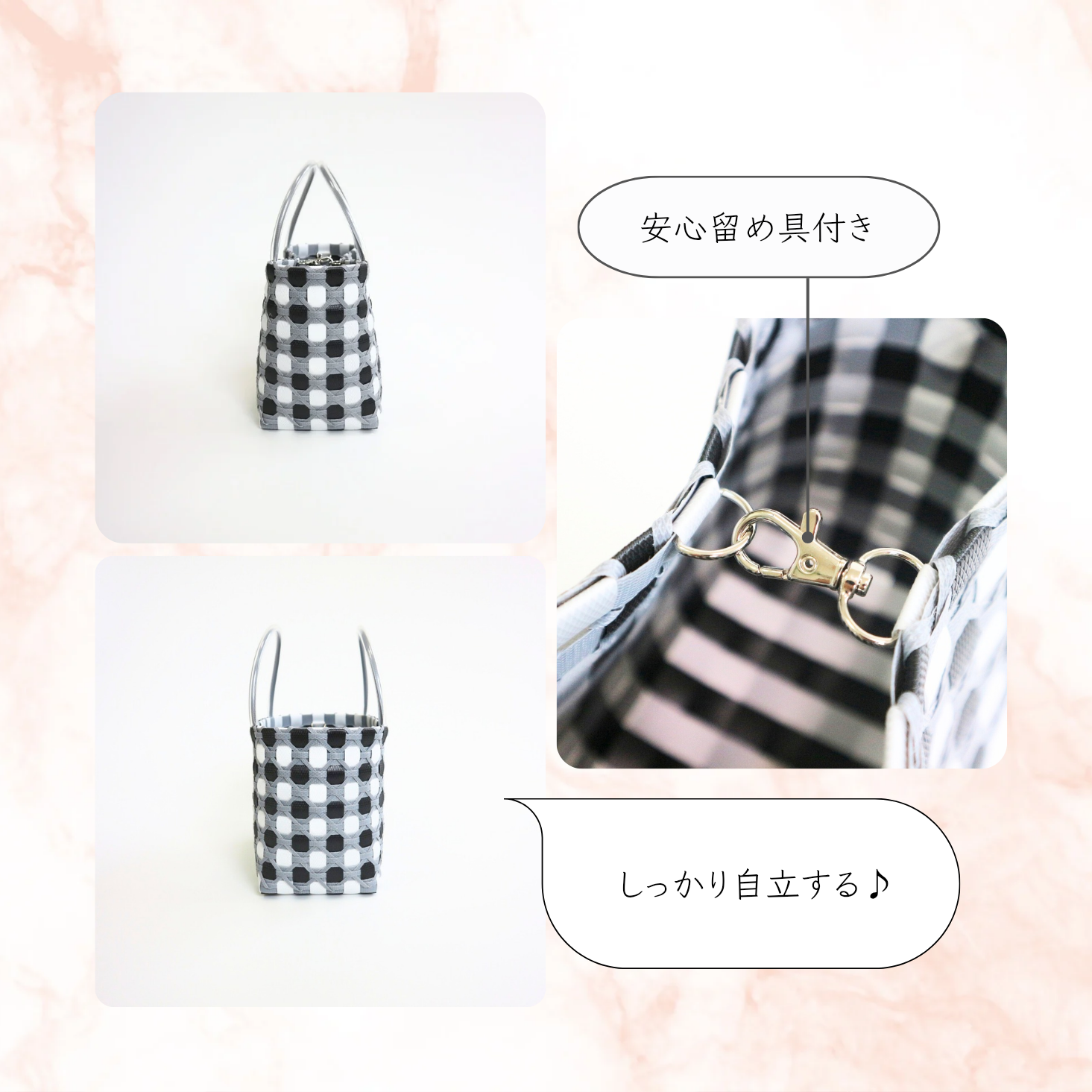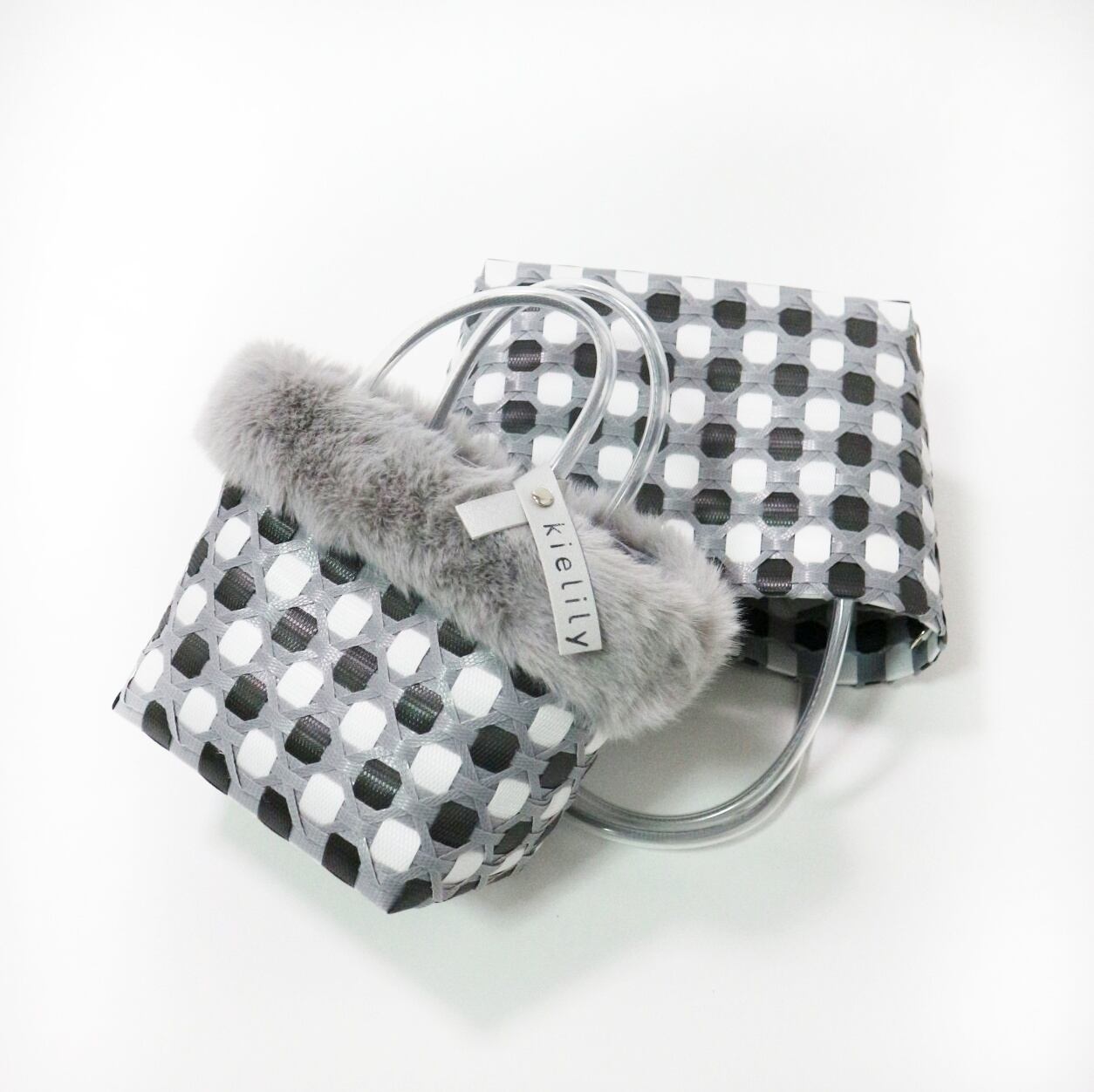 【グレーファー付き】ブラック ホワイト グレー プラカゴバッグ Sワイド おでかけ